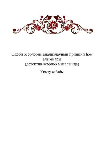 Әдәби әсәрләрне анализлауның принцип һәм алымнары (детектив әсәрләр мисалында). Принципы и приемы анализа литературных произведений (на примере детективов). «Туган тел һәм әдәбият», «Туган тел һәм әдәбият, рус теле», «Туган тел һәм әдәбият, чит тел» профильләре буенча белем алучы студентлар әчен укыту әсбабы. Учебное пособие для студентов обучающихся по профилю «Родной язык и литература», «Родной язык и литература, русский язык», «Родной язык и литература, иностранный язык»