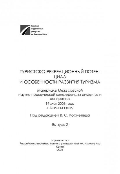 Сборник содержит материалы межвузовской научно-практической конференции студентов и аспирантов «Туристско-рекреационный потенциал и особенности развития туризма», проходившей 19 мая 2008 г. и посвященной актуальным проблемам развития туризма, вопросам влияния государственной политики на региональный и международный туризм и особенностям организации отдельных направлений этой сферы. Рассматриваются проблемы формирования имиджа территории, конкурентные возможности туризма и особенности его развития в Калининградской и Курской областях, а также перспективы развития различных видов туризма. Представляет интерес для преподавателей, аспирантов, студентов и практических работников сферы сервиса и туризма.
