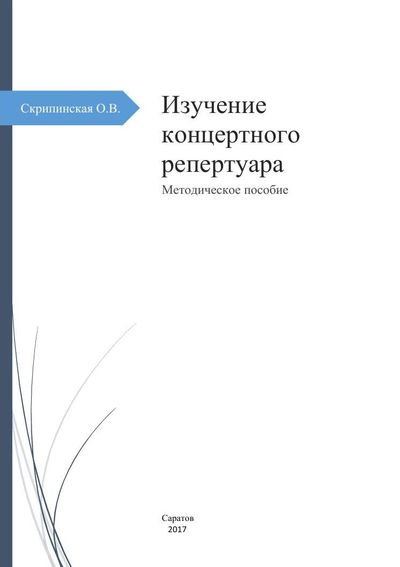 Скрипинская, О. В. Изучение концертного репертуара : методическое пособие / О. В. Скрипинская. — Саратов : Саратовская государственная консерватория имени Л.В. Собинова, 2017. — 21 c. — ISBN 978-5-94841-268-9. — Текст : электронный // Цифровой образовательный ресурс IPR SMART : [сайт]. — URL: https://www.iprbookshop.ru/73857.html (дата обращения: 13.01.2025). — Режим доступа: для авторизир. пользователей