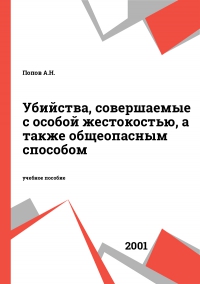Попов А.Н. Убийства, совершаемые с особой жестокостью, а также общеопасным способом / Попов А.Н.. — Санкт-Петербург : Санкт-Петербургский юридический институт (филиал) Академии Генеральной прокуратуры РФ, 2001. — 212 c. — Текст : электронный // Цифровой образовательный ресурс IPR SMART : [сайт]. — URL: https://www.iprbookshop.ru/73926.html (дата обращения: 16.12.2025). — Режим доступа: для авторизир. пользователей
