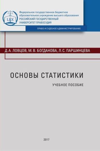 Ловцов, Д. А. Основы статистики : учебное пособие / Д. А. Ловцов, М. В. Богданова, Л. С. Паршинцева ; под редакцией Д. А. Ловцов. — Москва : Российский государственный университет правосудия, 2017. — 160 c. — ISBN 978-5-93916-576-1. — Текст : электронный // Цифровой образовательный ресурс IPR SMART : [сайт]. — URL: https://www.iprbookshop.ru/74166.html (дата обращения: 30.01.2025). — Режим доступа: для авторизир. пользователей