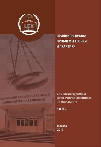 Сборник содержит статьи и доклады ведущих ученых-правоведов и практических работников, которые прозвучали на международной научно-практической конференции (РГУП, Москва, 18–22 апреля 2016 г.). В настоящем сборнике рассматриваются понятие, природа, классификация и место в правовой системе России принципов права. Анализируются как общетеоретические аспекты понимания и применения принципов права, так и проблемы применения отдельных отраслевых принципов. На Информационно-образовательном портале РГУП (www.op.raj.ru) представлены материалы Всероссийской научно-практической конференции аспирантов, соискателей и молодых ученых «Принципы права: теоретические и практические проблемы» (РГУП, 26 апреля 2016 г.). Рекомендован юридической общественности, аспирантам, магистрантам, студентам юридических вузов, может быть полезным практическим работникам.