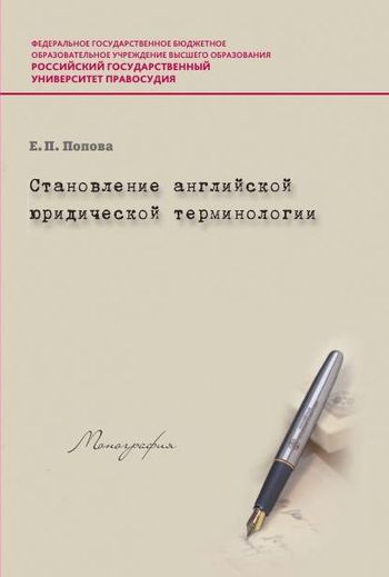 Попова, Е. П. Становление английской юридической терминологии : монография / Е. П. Попова. — Москва : Российский государственный университет правосудия, 2017. — 132 c. — ISBN 978-5-93916-604-1. — Текст : электронный // Цифровой образовательный ресурс IPR SMART : [сайт]. — URL: https://www.iprbookshop.ru/74182.html (дата обращения: 22.04.2024). — Режим доступа: для авторизир. пользователей