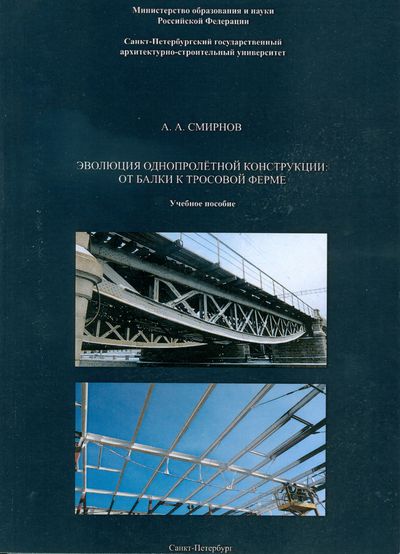 Смирнов, А. А. Эволюция однопролетной конструкции. От балки к тросовой ферме : учебное пособие / А. А. Смирнов. — Санкт-Петербург : Санкт-Петербургский государственный архитектурно-строительный университет, ЭБС АСВ, 2016. — 136 c. — ISBN 978-5-9227-0706-0. — Текст : электронный // Цифровой образовательный ресурс IPR SMART : [сайт]. — URL: https://www.iprbookshop.ru/74380.html (дата обращения: 14.04.2025). — Режим доступа: для авторизир. пользователей