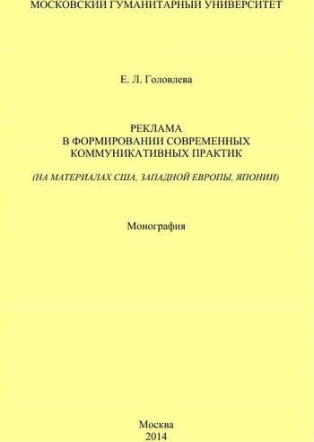 Головлева, Е. Л. Реклама в формировании современных коммуникативных практик (на материалах США, Западной Европы, Японии) / Е. Л. Головлева. — Москва : Московский гуманитарный университет, 2014. — 224 c. — Текст : электронный // Цифровой образовательный ресурс IPR SMART : [сайт]. — URL: https://www.iprbookshop.ru/74738.html (дата обращения: 02.04.2025). — Режим доступа: для авторизир. пользователей