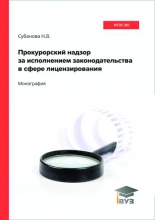 Субанова Н.В. Прокурорский надзор за исполнением законов в сфере лицензирования : учебное пособие / Субанова Н.В.. — Саратов : Вузовское образование, 2018. — 88 c. — ISBN 978-5-4487-0208-2. — Текст : электронный // Цифровой образовательный ресурс IPR SMART : [сайт]. — URL: https://www.iprbookshop.ru/74873.html (дата обращения: 06.12.2025). — Режим доступа: для авторизир. пользователей