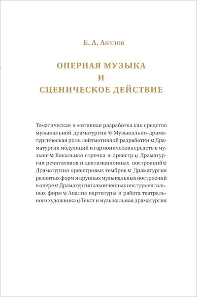 Главный труд профессора ГИТИСа дирижера Евгения Алексеевича Акулова (1905—1996) посвящен практическим задачам музыкального театра. Книга адресована режиссерам оперы или оперетты, дирижерам, хормейстерам, концертмейстерам, а также артистам, театральным художникам и другим творческим работникам театра.