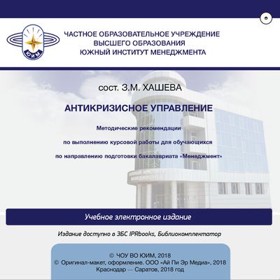 Антикризисное управление : методические указания по написанию курсовой работы для обучающихся по направлению подготовки бакалавриата «Менеджмент» / . — Краснодар, Саратов : Южный институт менеджмента, Ай Пи Эр Медиа, 2018. — 51 c. — Текст : электронный // Цифровой образовательный ресурс IPR SMART : [сайт]. — URL: https://www.iprbookshop.ru/75083.html (дата обращения: 05.12.2025). — Режим доступа: для авторизир. пользователей