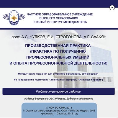 Производственная практика: практика по получению профессиональных умений и опыта профессиональной деятельности : методические указания для студентов-бакалавров, обучающихся по направлению подготовки «Экономика», профиль «Финансы и кредит» / . — Краснодар, Саратов : Южный институт менеджмента, Ай Пи Эр Медиа, 2018. — 21 c. — Текст : электронный // Цифровой образовательный ресурс IPR SMART : [сайт]. — URL: https://www.iprbookshop.ru/75091.html (дата обращения: 14.12.2025). — Режим доступа: для авторизир. пользователей