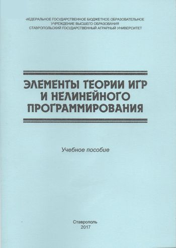 Литвин Д.Б. Элементы теории игр и нелинейного программирования : учебное пособие / Литвин Д.Б., Мелешко С.В., Мамаев И.И.. — Ставрополь : Ставропольский государственный аграрный университет, Сервисшкола, 2017. — 84 c. — Текст : электронный // Цифровой образовательный ресурс IPR SMART : [сайт]. — URL: https://www.iprbookshop.ru/76072.html (дата обращения: 14.12.2025). — Режим доступа: для авторизир. пользователей