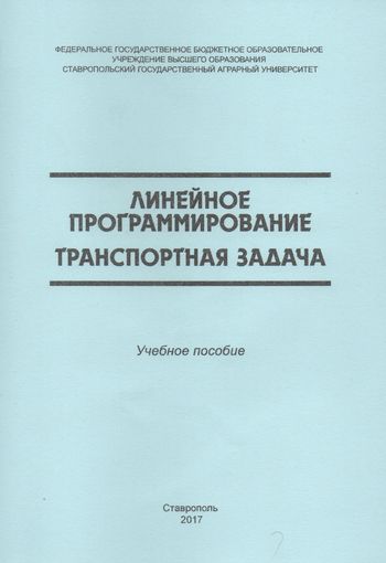 Литвин Д.Б. Линейное программирование. Транспортная задача : учебное пособие / Литвин Д.Б., Мелешко С.В., Мамаев И.И.. — Ставрополь : Ставропольский государственный аграрный университет, Сервисшкола, 2017. — 84 c. — Текст : электронный // Цифровой образовательный ресурс IPR SMART : [сайт]. — URL: https://www.iprbookshop.ru/76116.html (дата обращения: 17.12.2025). — Режим доступа: для авторизир. пользователей
