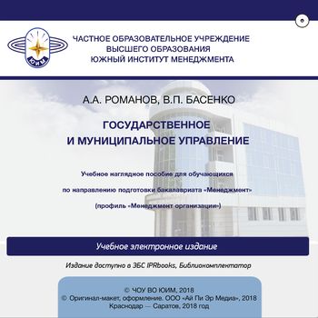 Романов А.А. Государственное и муниципальное управление : учебное наглядное пособие для обучающихся по направлению подготовки бакалавриата «Менеджмент» (профиль «Менеджмент организации») / Романов А.А., Басенко В.П.. — Краснодар, Саратов : Южный институт менеджмента, Ай Пи Эр Медиа, 2018. — 75 c. — Текст : электронный // Цифровой образовательный ресурс IPR SMART : [сайт]. — URL: https://www.iprbookshop.ru/76914.html (дата обращения: 18.12.2025). — Режим доступа: для авторизир. пользователей