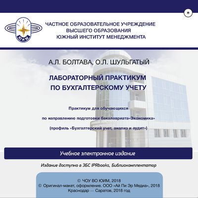 Болтава А.Л. Лабораторный практикум по бухгалтерскому учету : практикум для обучающихся по направлению подготовки бакалавриата «Экономика» (профиль «Бухгалтерский учет, анализ и аудит») / Болтава А.Л., Шульгатый О.Л.. — Краснодар, Саратов : Южный институт менеджмента, Ай Пи Эр Медиа, 2018. — 64 c. — Текст : электронный // Цифровой образовательный ресурс IPR SMART : [сайт]. — URL: https://www.iprbookshop.ru/76916.html (дата обращения: 05.12.2025). — Режим доступа: для авторизир. пользователей