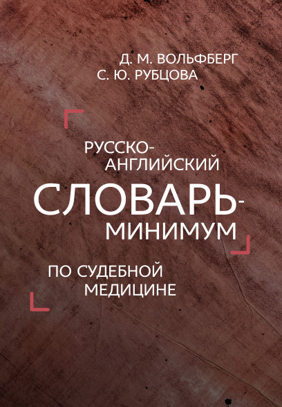 Вольфберг, Д. М. Русско-английский словарь-минимум по судебной медицине / Д. М. Вольфберг, С. Ю. Рубцова. — Санкт-Петербург : Книжный дом, 2018. — 106 c. — ISBN 978-5-94777-425-2. — Текст : электронный // Цифровой образовательный ресурс IPR SMART : [сайт]. — URL: https://www.iprbookshop.ru/77147.html (дата обращения: 15.11.2024). — Режим доступа: для авторизир. пользователей