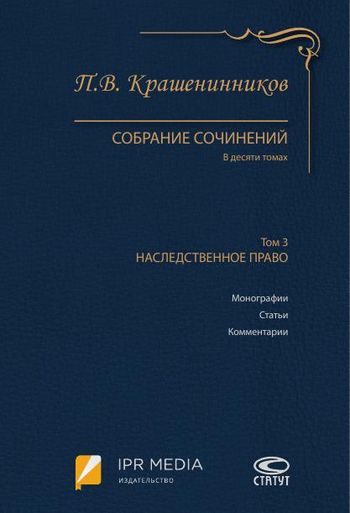 Крашенинников, П. В. Собрание сочинений. В 10 томах. Т. 3. Наследственное право / П. В. Крашенинников. — Москва, Саратов : Статут, 2019. — 334 c. — ISBN 978-5-907139-07-7. — Текст : электронный // Цифровой образовательный ресурс IPR SMART : [сайт]. — URL: https://www.iprbookshop.ru/77563.html (дата обращения: 02.08.2024). — Режим доступа: для авторизир. пользователей