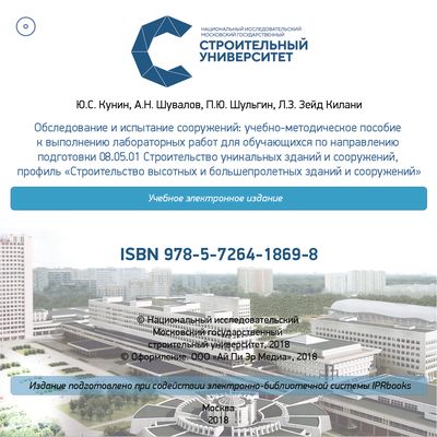 Обследование и испытание сооружений : учебно-методическое пособие к выполнению лабораторных работ для обучающихся по направлению подготовки 08.05.01 Строительство уникальных зданий и сооружений, профиль «Строительство высотных и большепролетных зданий и сооружений» / Ю. С. Кунин, А. Н. Шувалов, П. Ю. Шульгин, Зейд Л. З. Килани. — Москва : МИСИ-МГСУ, Ай Пи Эр Медиа, ЭБС АСВ, 2018. — 139 c. — ISBN 978-5-7264-1870-4. — Текст : электронный // Цифровой образовательный ресурс IPR SMART : [сайт]. — URL: https://www.iprbookshop.ru/78025.html (дата обращения: 21.10.2024). — Режим доступа: для авторизир. пользователей