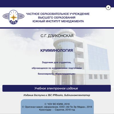 Дзиконская, С. Г. Криминология : задачник для студентов, обучающихся по направлению подготовки бакалавриата «Юриспруденция» / С. Г. Дзиконская. — Краснодар, Саратов : Южный институт менеджмента, Ай Пи Эр Медиа, 2018. — 72 c. — Текст : электронный // Цифровой образовательный ресурс IPR SMART : [сайт]. — URL: https://www.iprbookshop.ru/78032.html (дата обращения: 02.09.2025). — Режим доступа: для авторизир. пользователей