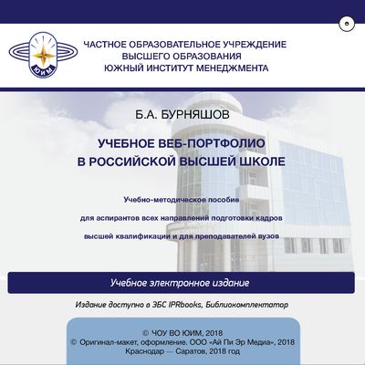 Бурняшов Б.А. Учебное веб-портфолио в российской высшей школе : учебно-методическое пособие для аспирантов всех направлений подготовки кадров высшей квалификации и для преподавателей вузов / Бурняшов Б.А.. — Краснодар, Саратов : Южный институт менеджмента, Ай Пи Эр Медиа, 2018. — 80 c. — Текст : электронный // Цифровой образовательный ресурс IPR SMART : [сайт]. — URL: https://www.iprbookshop.ru/78047.html (дата обращения: 05.12.2025). — Режим доступа: для авторизир. пользователей