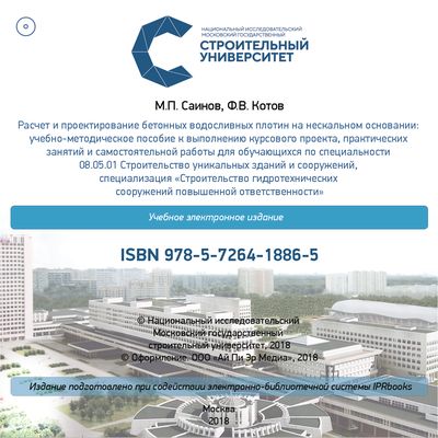 Саинов, М. П. Расчет и проектирование бетонных водосливных плотин на нескальном основании : учебно-методическое пособие к выполнению курсового проекта, практических занятий и самостоятельной работы для обучающихся по специальности 08.05.01 Строительство уникальных зданий и сооружений, специализация «Строительство гидротехнических сооружений повышенной ответственности» / М. П. Саинов, Ф. В. Котов. — Москва : МИСИ-МГСУ, Ай Пи Эр Медиа, ЭБС АСВ, 2018. — 99 c. — ISBN 978-5-7264-1887-2. — Текст : электронный // Цифровой образовательный ресурс IPR SMART : [сайт]. — URL: https://www.iprbookshop.ru/79890.html (дата обращения: 06.11.2024). — Режим доступа: для авторизир. пользователей