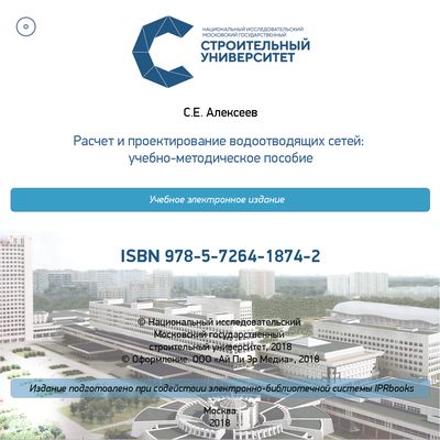Алексеев С.Е. Расчет и проектирование водоотводящих сетей : учебно-методическое пособие / Алексеев С.Е.. — Москва : МИСИ-МГСУ, Ай Пи Эр Медиа, ЭБС АСВ, 2018. — 86 c. — ISBN 978-5-7264-1875-9. — Текст : электронный // Цифровой образовательный ресурс IPR SMART : [сайт]. — URL: https://www.iprbookshop.ru/79891.html (дата обращения: 15.12.2025). — Режим доступа: для авторизир. пользователей