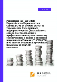 Регламент (ЕС) 1094/2010 Европейского Парламента и Совета ЕС от 24 ноября 2010 г. об учреждении Европейского надзорного органа (Европейского органа по страхованию и профессиональному пенсионному обеспечению), а также о внесении изменений в Решение 716/2009/EC и об отмене Решения Европейской Комиссии 2009/79/EC