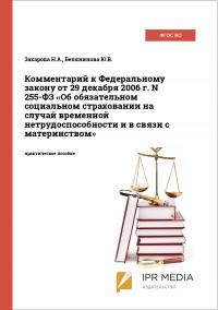 Захарова, Н. А. Комментарий к Федеральному закону от 29 декабря 2006 г. N 255-ФЗ «Об обязательном социальном страховании на случай временной нетрудоспособности и в связи с материнством» / Н. А. Захарова, Ю. В. Белянинова. — 4-е изд. — Саратов : Ай Пи Эр Медиа, 2019. — 263 c. — ISBN 978-5-4486-0635-9. — Текст : электронный // Цифровой образовательный ресурс IPR SMART : [сайт]. — URL: https://www.iprbookshop.ru/80352.html (дата обращения: 27.06.2024). — Режим доступа: для авторизир. пользователей