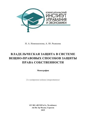 Новокшонова Н.А. Владельческая защита в системе вещно-правовых способов защиты права собственности : монография / Новокшонова Н.А., Рыжкова А.Ю.. — Челябинск, Саратов : Южно-Уральский институт управления и экономики, Ай Пи Эр Медиа, 2019. — 136 c. — ISBN 978-5-4486-0668-7. — Текст : электронный // Цифровой образовательный ресурс IPR SMART : [сайт]. — URL: https://www.iprbookshop.ru/81473.html (дата обращения: 08.12.2025). — Режим доступа: для авторизир. пользователей