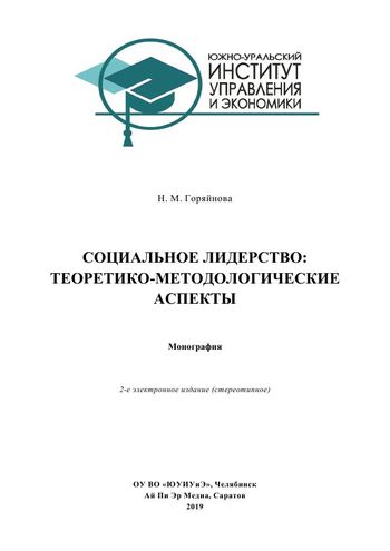 Горяйнова, Н. М. Социальное лидерство: теоретико-методологические аспекты : монография / Н. М. Горяйнова. — 2-е изд. — Челябинск, Саратов : Южно-Уральский институт управления и экономики, Ай Пи Эр Медиа, 2019. — 202 c. — ISBN 978-5-4486-0655-7. — Текст : электронный // Цифровой образовательный ресурс IPR SMART : [сайт]. — URL: https://www.iprbookshop.ru/81496.html (дата обращения: 30.07.2024). — Режим доступа: для авторизир. пользователей
