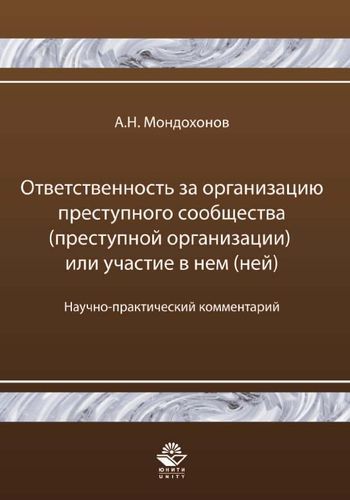 Мондохонов, А. Н. Ответственность за организацию преступного сообщества (преступной организации) или участие в нем (ней) : научно-практический комментарий / А. Н. Мондохонов. — Москва : ЮНИТИ-ДАНА, 2017. — 159 c. — ISBN 978-5-238-02256-7. — Текст : электронный // Цифровой образовательный ресурс IPR SMART : [сайт]. — URL: https://www.iprbookshop.ru/81524.html (дата обращения: 23.06.2024). — Режим доступа: для авторизир. пользователей