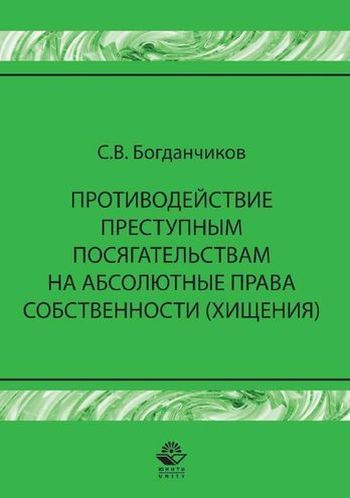 Богданчиков, С. В. Противодействие преступным посягательствам на абсолютные права собственности (хищения) : монография / С. В. Богданчиков ; под редакцией А. А. Магомедова. — Москва : ЮНИТИ-ДАНА, 2017. — 160 c. — ISBN 978-5-238-01404-3. — Текст : электронный // Цифровой образовательный ресурс IPR SMART : [сайт]. — URL: https://www.iprbookshop.ru/81543.html (дата обращения: 23.06.2024). — Режим доступа: для авторизир. пользователей