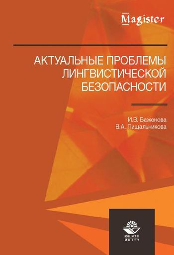 Баженова, И. В. Актуальные проблемы лингвистической безопасности : монография / И. В. Баженова, В. А. Пищальникова. — Москва : ЮНИТИ-ДАНА, 2017. — 151 c. — ISBN 978-5-238-02745-6. — Текст : электронный // Цифровой образовательный ресурс IPR SMART : [сайт]. — URL: https://www.iprbookshop.ru/83066.html (дата обращения: 17.06.2024). — Режим доступа: для авторизир. пользователей
