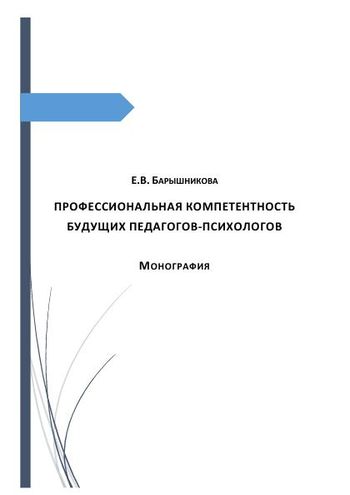 Барышникова, Е. В. Профессиональная компетентность будущих педагогов-психологов : монография / Е. В. Барышникова. — Челябинск : Южно-Уральский государственный гуманитарно-педагогический университет, 2017. — 237 c. — ISBN 978-5-906908-33-9. — Текст : электронный // Цифровой образовательный ресурс IPR SMART : [сайт]. — URL: https://www.iprbookshop.ru/83877.html (дата обращения: 21.01.2025). — Режим доступа: для авторизир. пользователей