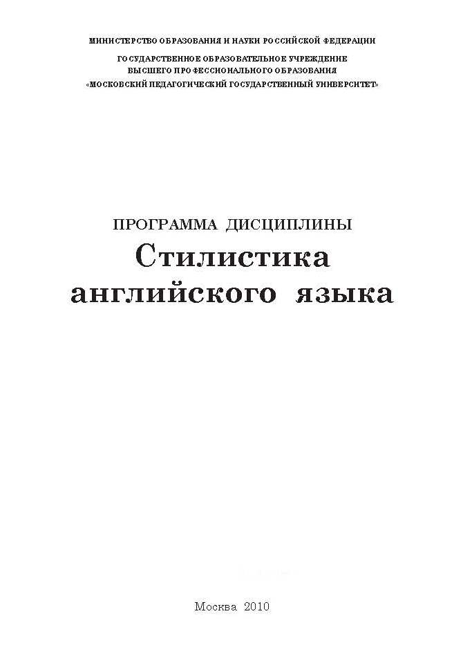 Дисциплина «Стилистика английского языка» входит в федеральный компонент цикла дисциплин предметной подготовки по специальности 033200.32 – Иностранный язык с дополнительной специальностью «Иностранный язык» и является обязательной для изучения. Учебная программа составлена в соответствии с требованиями Государственного образовательного стандарта высшего профессионального образования.