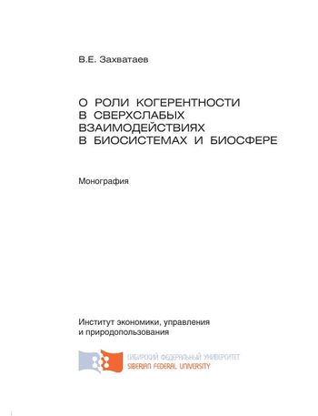 Захватаев, В. Е. О роли когерентности в сверхслабых взаимодействиях в биосистемах и биосфере : монография / В. Е. Захватаев. — Красноярск : Сибирский федеральный университет, 2014. — 244 c. — ISBN 978-5-7638-3016-3. — Текст : электронный // Цифровой образовательный ресурс IPR SMART : [сайт]. — URL: https://www.iprbookshop.ru/84264.html (дата обращения: 29.11.2024). — Режим доступа: для авторизир. пользователей