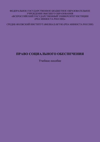 Право социального обеспечения : учебное пособие / . — Саранск : Средне-Волжский институт (филиал) ВГУЮ (РПА Минюста России), 2019. — 113 c. — ISBN 978-5-6041819-6-6. — Текст : электронный // Цифровой образовательный ресурс IPR SMART : [сайт]. — URL: https://www.iprbookshop.ru/84444.html (дата обращения: 20.12.2025). — Режим доступа: для авторизир. пользователей