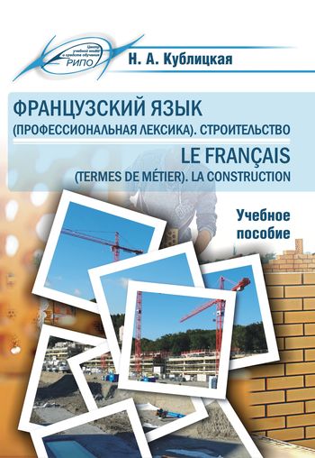 Кублицкая, Н. А. Французский язык (профессиональная лексика). Строительство. Le français (termes de métier). La construction : учебное пособие / Н. А. Кублицкая. — Минск : Республиканский институт профессионального образования (РИПО), 2017. — 128 c. — ISBN 978-985-503-735-5. — Текст : электронный // Цифровой образовательный ресурс IPR SMART : [сайт]. — URL: https://www.iprbookshop.ru/84927.html (дата обращения: 16.06.2023). — Режим доступа: для авторизир. пользователей
