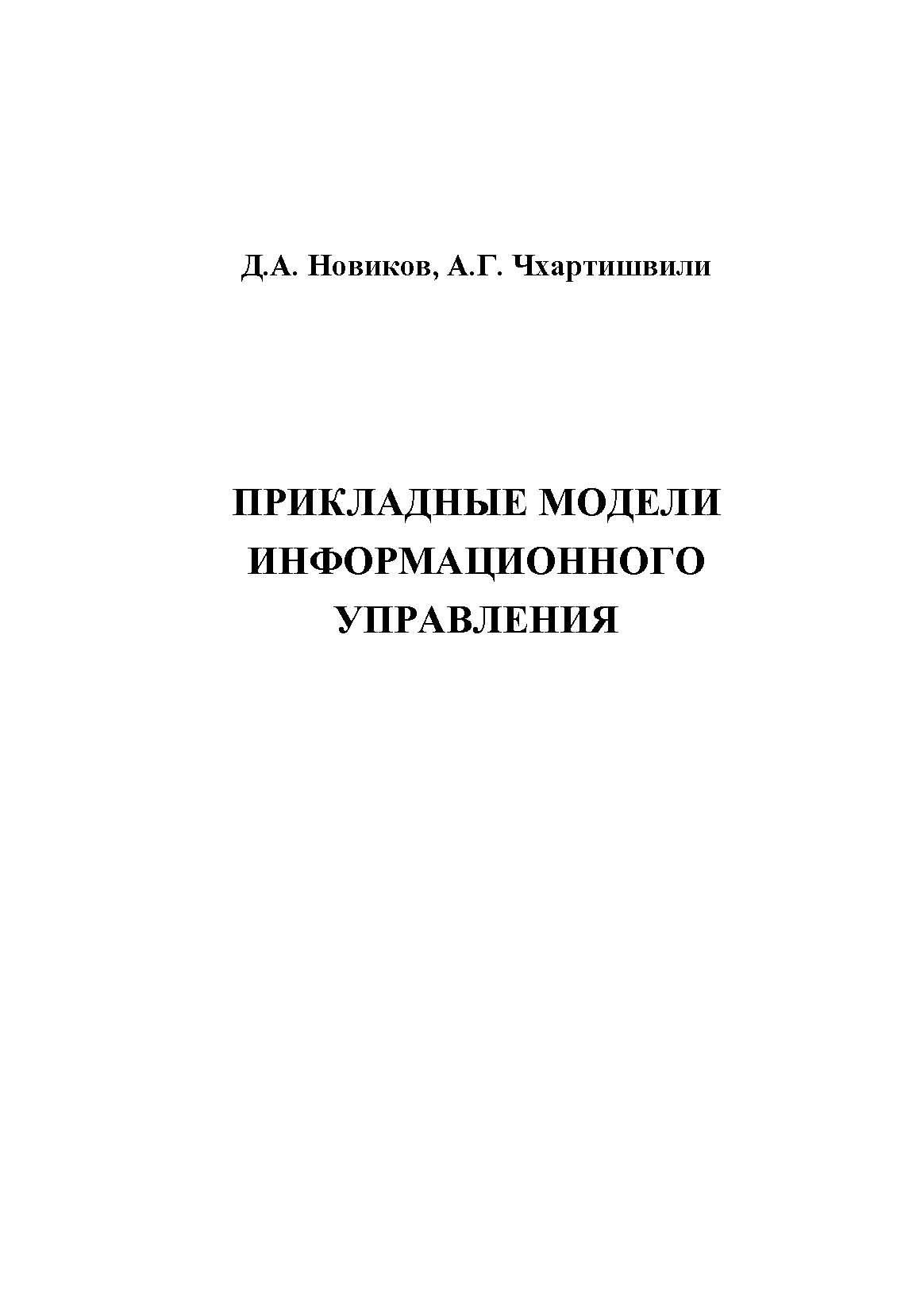 Новиков Д.А. Прикладные модели информационного управления : монография / Новиков Д.А., Чхартишвили А.Г.. — Москва : ИПУ РАН, 2004. — 129 c. — ISBN -. — Текст : электронный // Цифровой образовательный ресурс IPR SMART : [сайт]. — URL: https://www.iprbookshop.ru/8518.html (дата обращения: 19.12.2025). — Режим доступа: для авторизир. пользователей