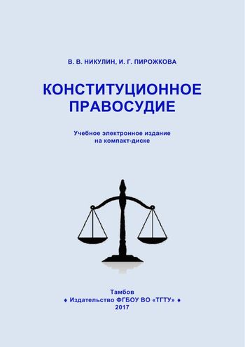 Никулин, В. В. Конституционное правосудие : учебное пособие / В. В. Никулин, И. Г. Пирожкова. — Тамбов : Тамбовский государственный технический университет, ЭБС АСВ, 2017. — 97 c. — ISBN 978-5-8265-1684-3. — Текст : электронный // Цифровой образовательный ресурс IPR SMART : [сайт]. — URL: https://www.iprbookshop.ru/85931.html (дата обращения: 19.06.2024). — Режим доступа: для авторизир. пользователей