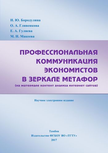 Профессиональная коммуникация экономистов в зеркале метафор (на материале контент анализа интернет сайтов) / Н. Ю. Бородулина, О. А. Гливенкова, Е. А. Гуляева, М. Н. Макеева. — Тамбов : Тамбовский государственный технический университет, ЭБС АСВ, 2017. — 201 c. — ISBN 978-5-8265-1756-7. — Текст : электронный // Цифровой образовательный ресурс IPR SMART : [сайт]. — URL: https://www.iprbookshop.ru/85943.html (дата обращения: 28.02.2024). — Режим доступа: для авторизир. пользователей