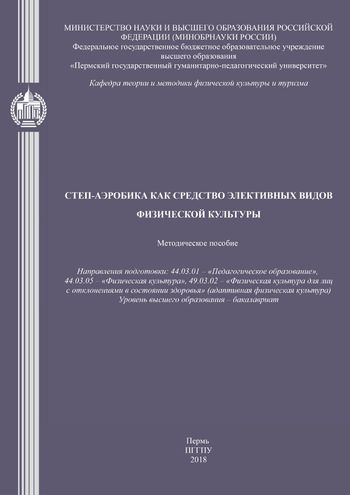 Степ-аэробика как средство элективных видов физической культуры : методическое пособие / . — Пермь : Пермский государственный гуманитарно-педагогический университет, 2018. — 66 c. — ISBN 978-5-85219-006-2. — Текст : электронный // Цифровой образовательный ресурс IPR SMART : [сайт]. — URL: https://www.iprbookshop.ru/86384.html (дата обращения: 05.12.2025). — Режим доступа: для авторизир. пользователей