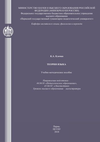 Теория языка : учебно-методическое пособие / . — Пермь : Пермский государственный гуманитарно-педагогический университет, 2018. — 120 c. — ISBN 978-5-85218-991-2. — Текст : электронный // Цифровой образовательный ресурс IPR SMART : [сайт]. — URL: https://www.iprbookshop.ru/86388.html (дата обращения: 06.12.2025). — Режим доступа: для авторизир. пользователей
