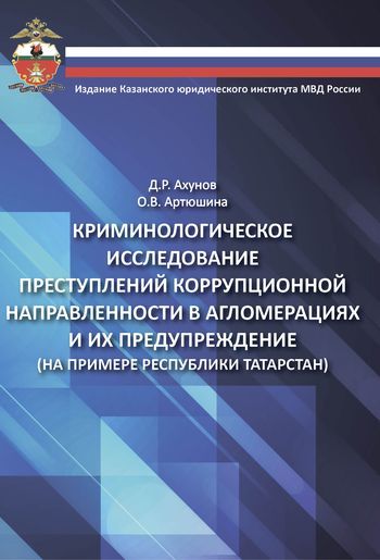 Ахунов, Д. Р. Криминологическое исследование преступлений коррупционной направленности в агломерациях и их предупреждение (на примере Республики Татарстан) : учебное пособие / Д. Р. Ахунов, О. В. Артюшина. — Казань : Казанский юридический институт МВД России, 2019. — 96 c. — ISBN 978-5-906977-56-4. — Текст : электронный // Цифровой образовательный ресурс IPR SMART : [сайт]. — URL: https://www.iprbookshop.ru/86479.html (дата обращения: 07.02.2024). — Режим доступа: для авторизир. пользователей