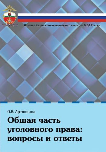 Артюшина О.В. Общая часть уголовного права. Вопросы и ответы : учебное пособие / Артюшина О.В.. — Казань : Казанский юридический институт МВД России, 2017. — 129 c. — ISBN 978-5-906977-19-9. — Текст : электронный // Цифровой образовательный ресурс IPR SMART : [сайт]. — URL: https://www.iprbookshop.ru/86482.html (дата обращения: 14.12.2025). — Режим доступа: для авторизир. пользователей