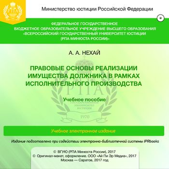 Нехай, А. А. Правовые основы реализации имущества должника в рамках исполнительного производства : учебное пособие / А. А. Нехай. — Москва, Саратов : Всероссийский государственный университет юстиции (РПА Минюста России), Ай Пи Эр Медиа, 2017. — 100 c. — ISBN 978-5-00094-615-2. — Текст : электронный // Цифровой образовательный ресурс IPR SMART : [сайт]. — URL: https://www.iprbookshop.ru/86929.html (дата обращения: 27.11.2024). — Режим доступа: для авторизир. пользователей