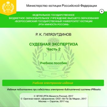 Гилязутдинов, Р. К. Судебная экспертиза. Часть 2 : учебное пособие / Р. К. Гилязутдинов. — Москва, Саратов : Всероссийский государственный университет юстиции (РПА Минюста России), Ай Пи Эр Медиа, 2017. — 152 c. — ISBN 978-5-00094-610-7. — Текст : электронный // Цифровой образовательный ресурс IPR SMART : [сайт]. — URL: https://www.iprbookshop.ru/86932.html (дата обращения: 13.06.2023). — Режим доступа: для авторизир. пользователей
