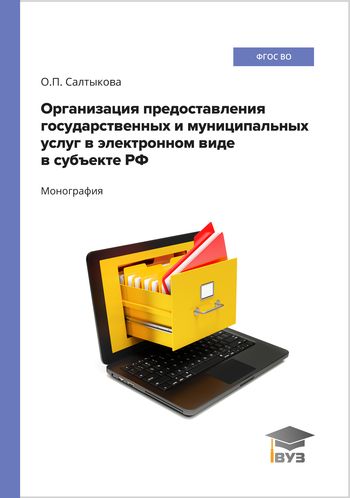 Салтыкова, О. П. Организация предоставления государственных и муниципальных услуг в электронном виде в субъекте РФ : монография / О. П. Салтыкова. — Саратов : Вузовское образование, 2020. — 61 c. — ISBN 978-5-4487-0594-6. — Текст : электронный // Цифровой образовательный ресурс IPR SMART : [сайт]. — URL: https://www.iprbookshop.ru/87202.html (дата обращения: 27.05.2024). — Режим доступа: для авторизир. пользователей