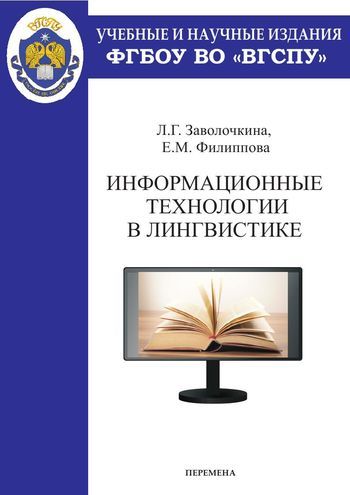Заволочкина, Л. Г. Информационные технологии в лингвистике : учебное пособие / Л. Г. Заволочкина, Е. М. Филиппова. — Волгоград : Волгоградский государственный социально-педагогический университет, «Перемена», 2019. — 91 c. — Текст : электронный // Цифровой образовательный ресурс IPR SMART : [сайт]. — URL: https://www.iprbookshop.ru/87379.html (дата обращения: 25.10.2024). — Режим доступа: для авторизир. пользователей