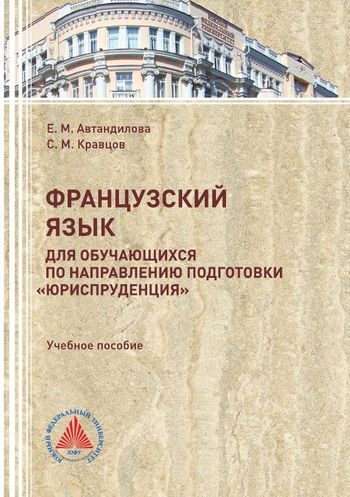 Автандилова, Е. М. Французский язык для обучающихся по направлению подготовки «Юриспруденция» : учебное пособие / Е. М. Автандилова, С. М. Кравцов. — Ростов-на-Дону, Таганрог : Издательство Южного федерального университета, 2017. — 147 c. — ISBN 978-5-9275-2464-8. — Текст : электронный // Цифровой образовательный ресурс IPR SMART : [сайт]. — URL: https://www.iprbookshop.ru/87518.html (дата обращения: 16.06.2023). — Режим доступа: для авторизир. пользователей