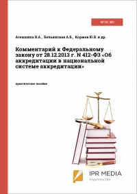 Комментарий к Федеральному закону от 28.12.2013 г. N 412-ФЗ «Об аккредитации в национальной системе аккредитации» / Н. А. Агешкина, А. Б. Бельянская, Ю. В. Коржов [и др.]. — Саратов : Ай Пи Ар Медиа, 2019. — 274 c. — ISBN 978-5-4497-0244-9. — Текст : электронный // Цифровой образовательный ресурс IPR SMART : [сайт]. — URL: https://www.iprbookshop.ru/87533.html (дата обращения: 27.06.2024). — Режим доступа: для авторизир. пользователей