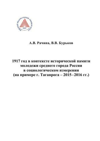 1917 год в контексте исторической памяти молодежи среднего города России в социологическом измерении (на примере г. Таганрога – 2015 – 2016 гг.). Монография